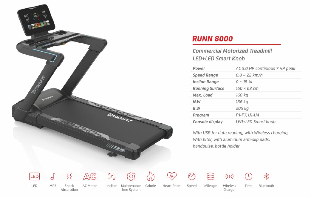 • Commercial Motorized Treadmill LED+LED Smart Knob. AC 5 HP