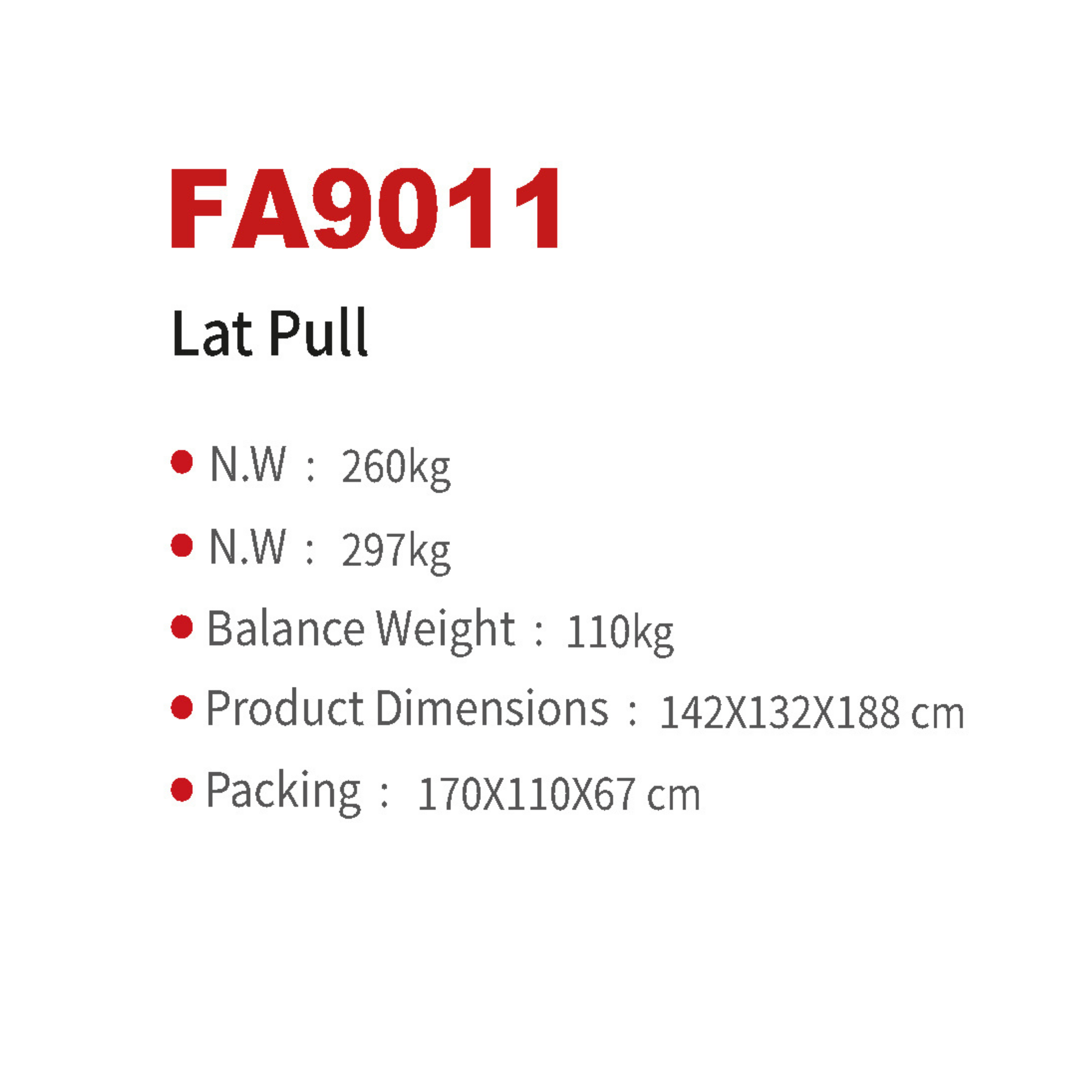 • Yumuşak ve Kontrollü Hareket: FA9011, üst sırt, omuzlar ve kolları etkili bir şekilde hedefleyen pürüzsüz ve kontrollü bir çekme hareketi sunacak şekilde tasarlanmıştır. Hassas mühendislik ürünü kasnak sistemi, egzersiz boyunca tutarlı direnç sağlar.