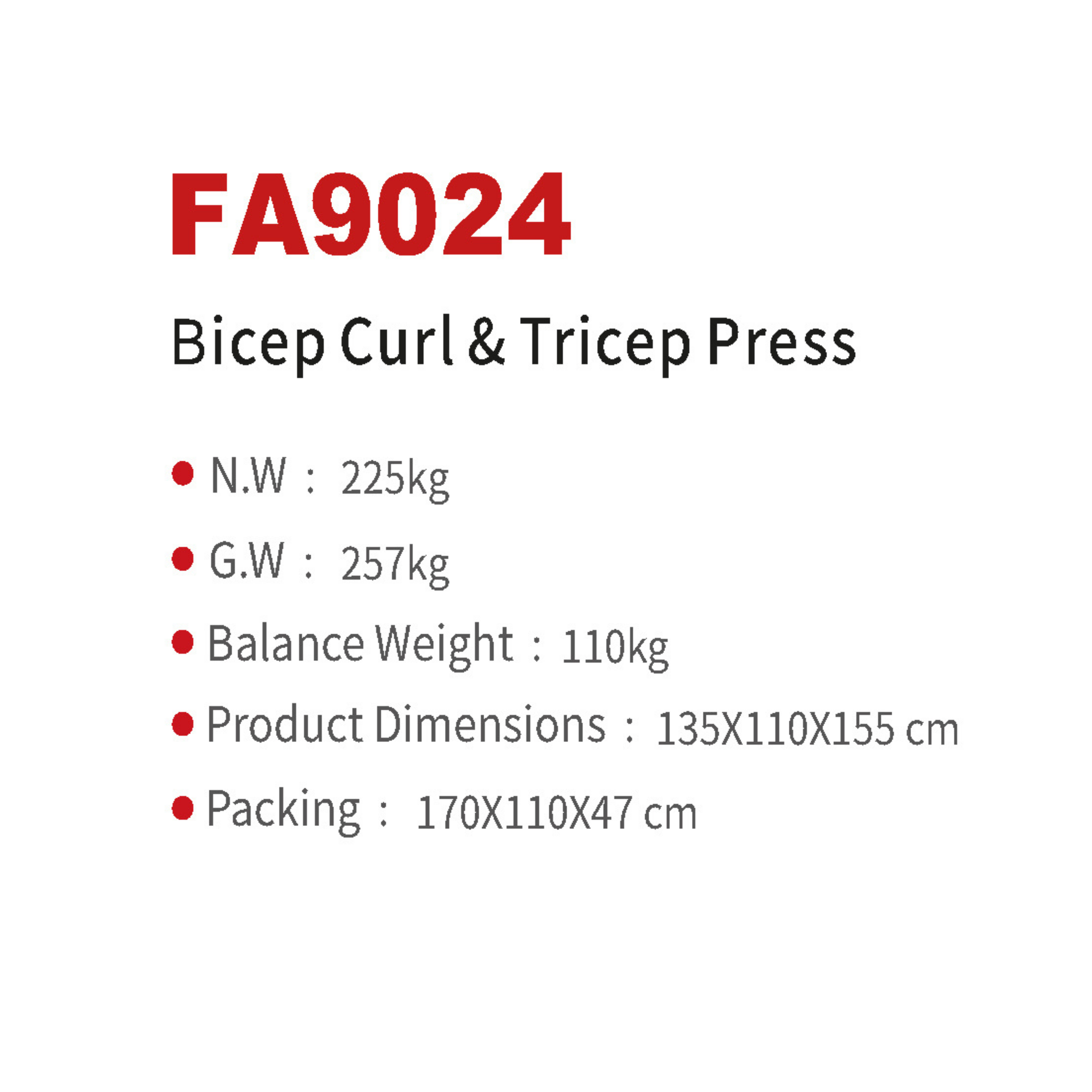 DAIWAFIT FA9024, spor salonunuza eklenmesi gereken, güçlü ve etkili bir kol antrenmanı sağlayan mükemmel bir alettir. Bu makine ile spor salonunuzun üyeleri daha güçlü kollara sahip olmanın keyfini çıkaracaklar.
